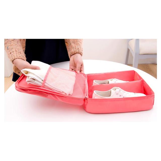 | 軽量で折りたたみ可能なトラベルシューズバッグ。 二層大容量、中央層は一つ仕切りと大きい収納スペース、高い靴が収納可能、運動靴も簡単に入れます。 最大シューズ3足収納可能です。 持ち運びやすい持ち手も付いております。 靴だけでなく、化粧品やバスタオル、着替えなども収納できます。 | |