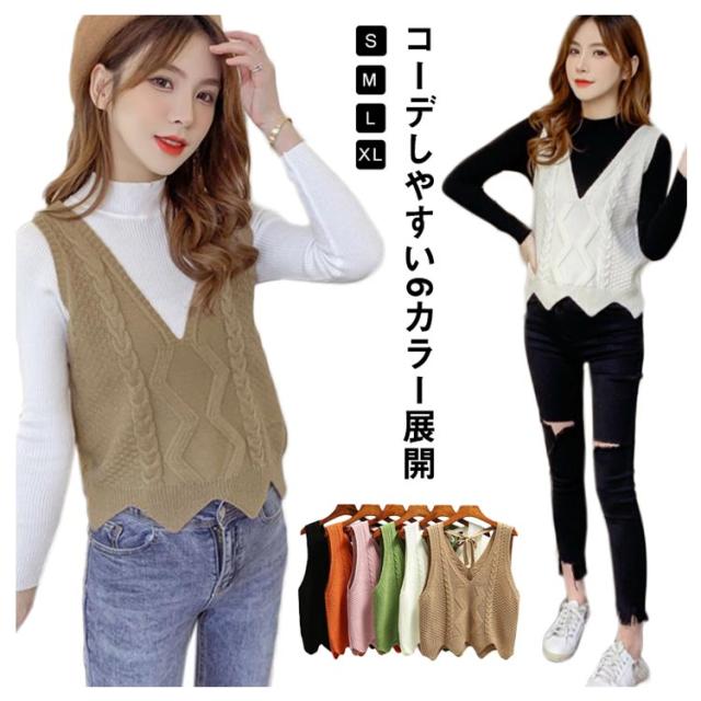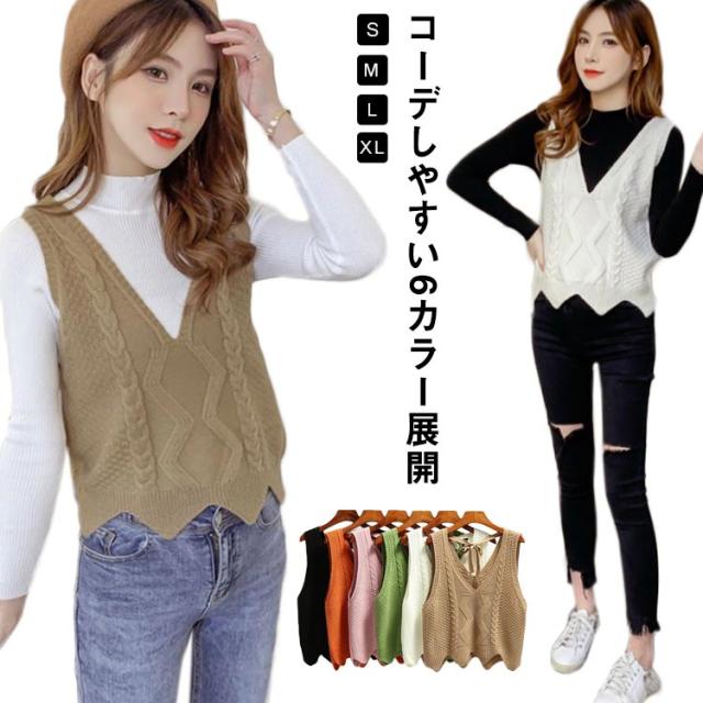 ニットベスト ニットタンクトップ ベスト レディース ニット タンクトップ トップス 重ね着 ベスト ケーブル編み ノースリーブ タンク レイヤードレイヤード風 ニットタンクトップ シンプル