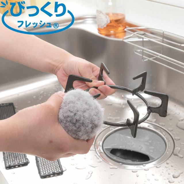 シンク用スポンジ びっくりフレッシュ 抗菌 サトミツボール ( シンク 掃除 スポンジ 水だけ 油汚れ 水アカ キッチン コンロ 吊るせる 丸型 掃除グッズ キッチン掃除 お掃除 掃除用具 グレー シンプル )