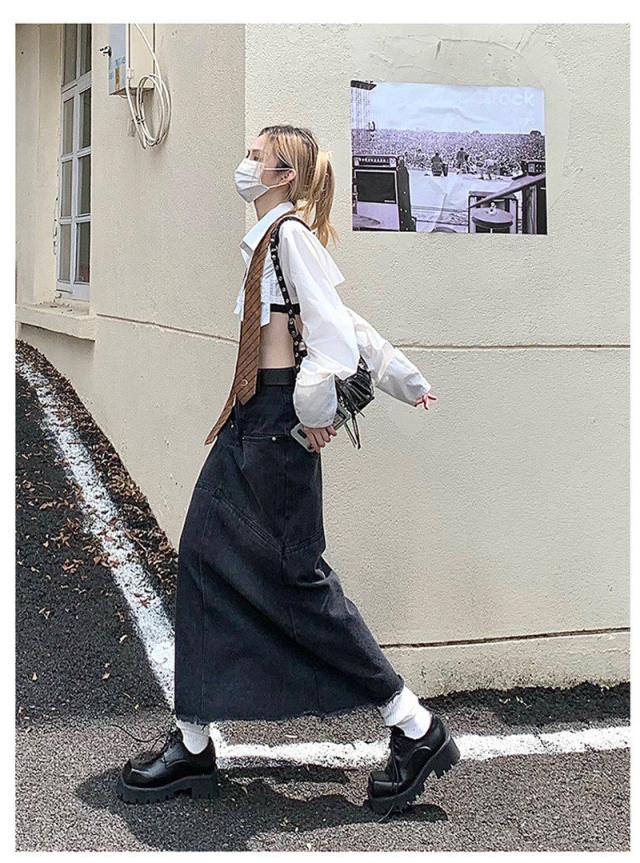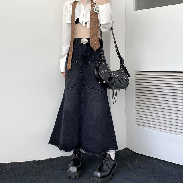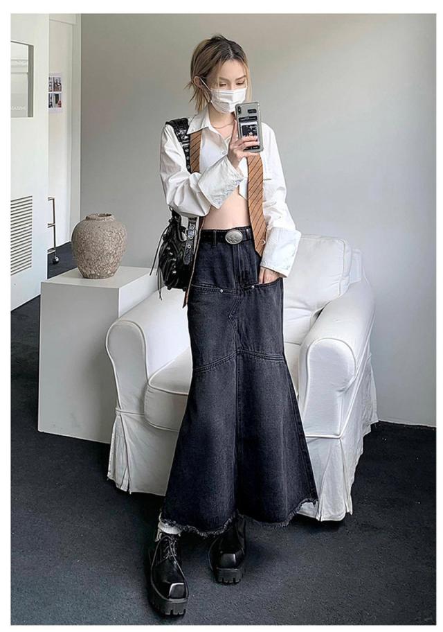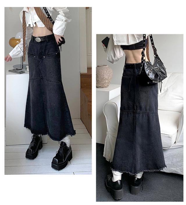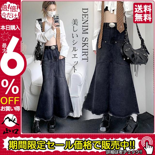 デニムスカート マーメイドスカート レディース タイトスカート ロング マキシ丈 ボトムス 可愛い フリンジ 無地 Aライン 春夏