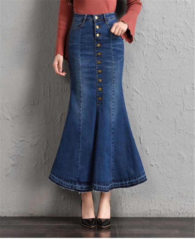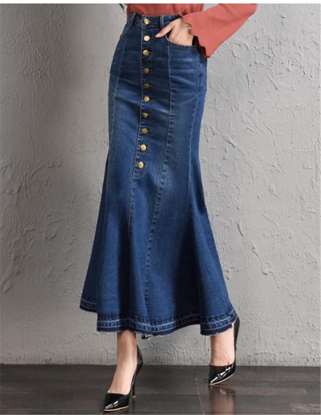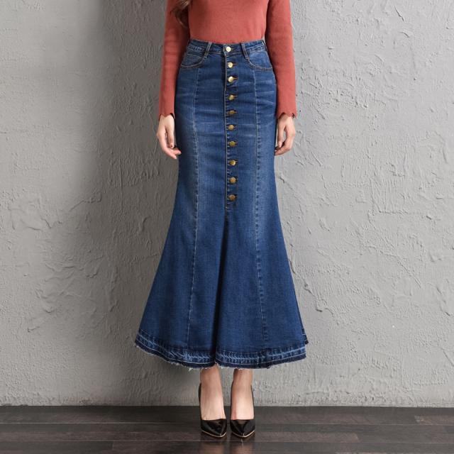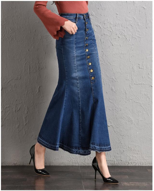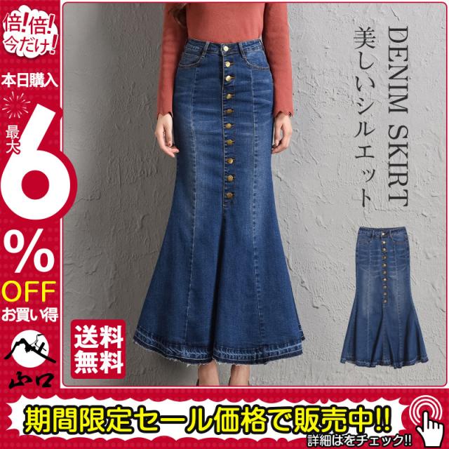 デニムスカート レディース マーメイド タイトスカート ボタン ロング フィット ボトムス 可愛い お洒落 無地 Aライン 春夏秋