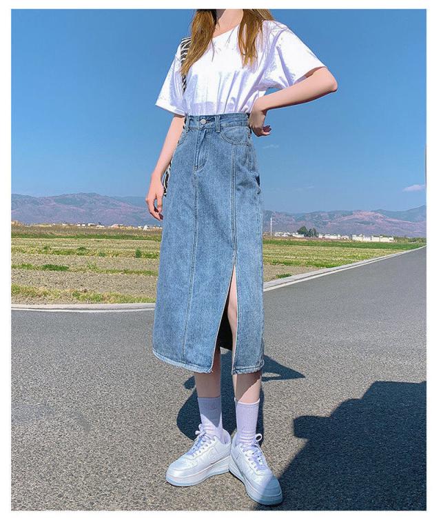 デニムスカート レディース タイトスカート ロング サイドスリット マキシ丈 ボトムス 可愛い お洒落 無地 Aライン 春夏秋冬