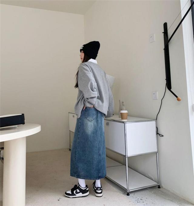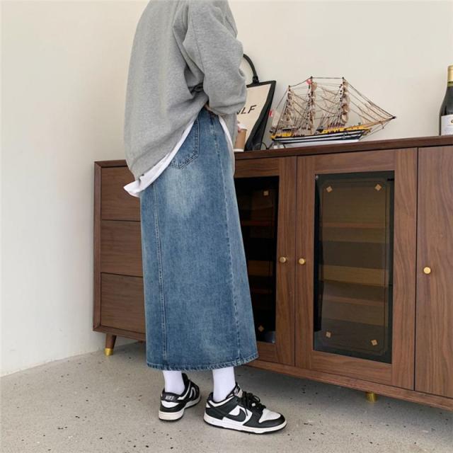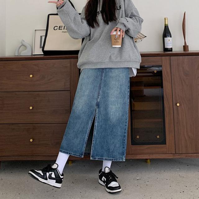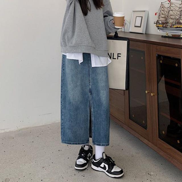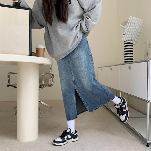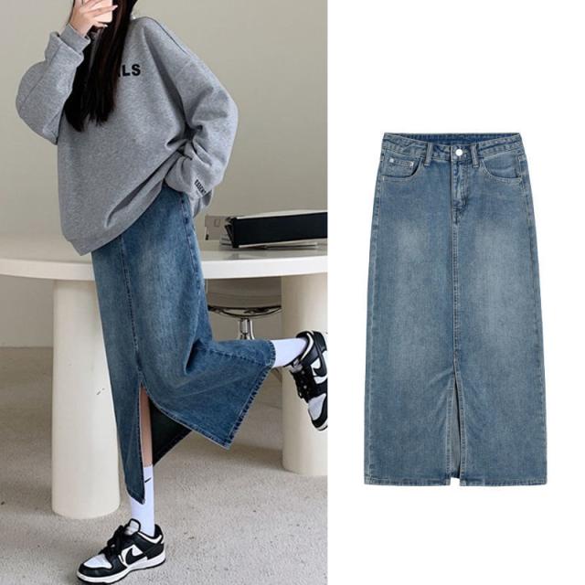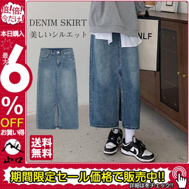 デニムスカート レディース タイトスカート ロング スリット マキシ丈 ボトムス ハイウエスト 可愛い お洒落 無地 Aライン 春