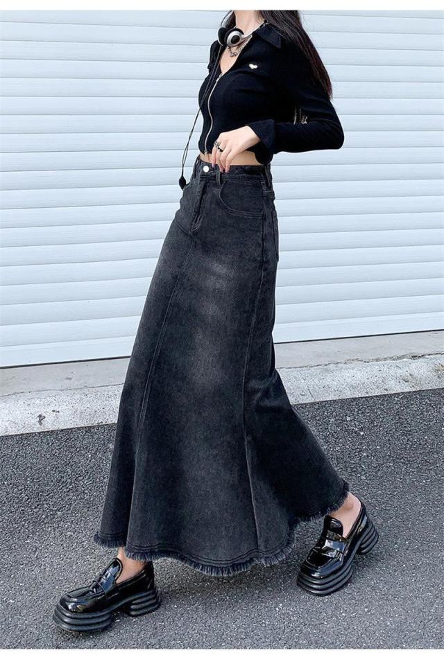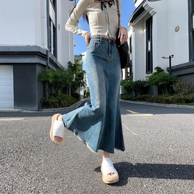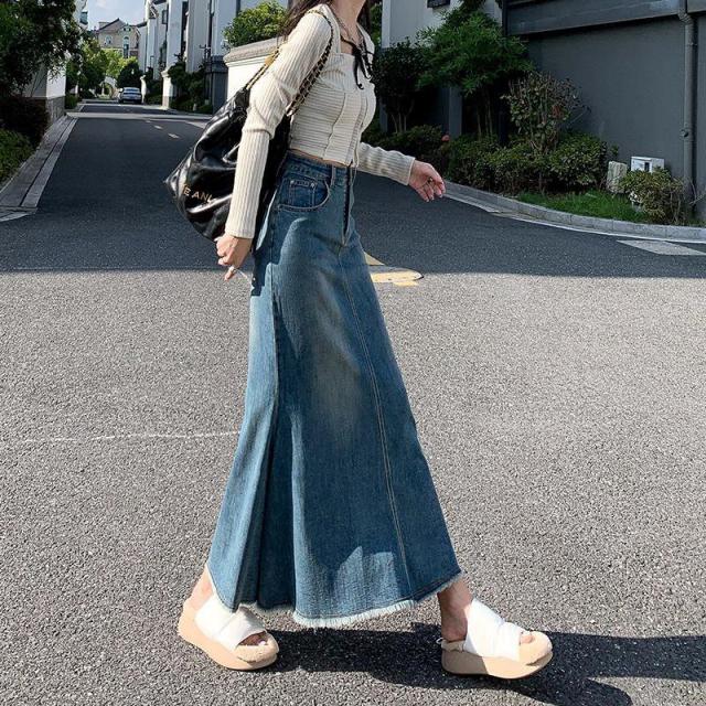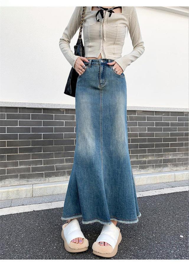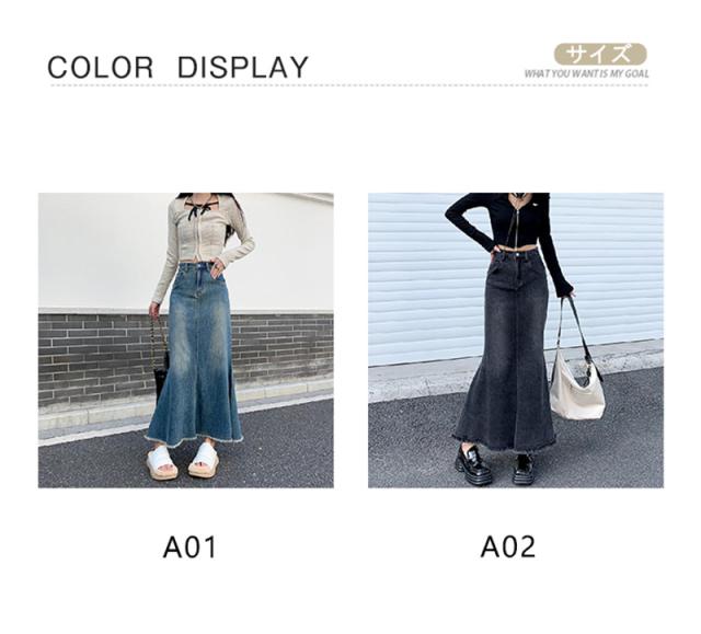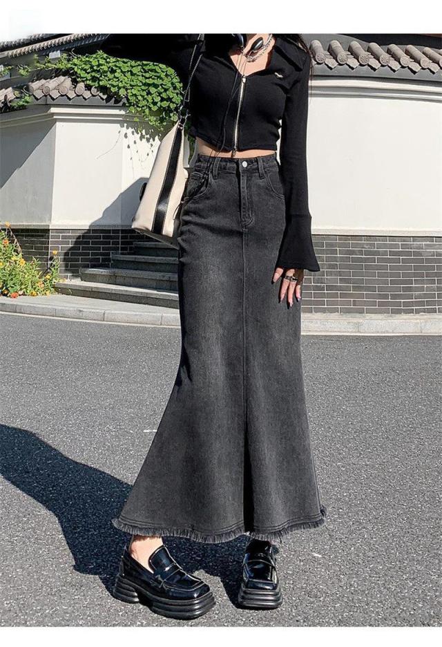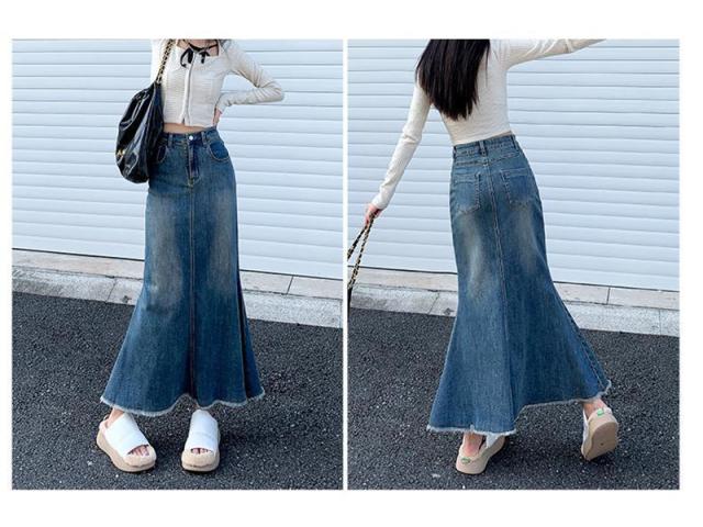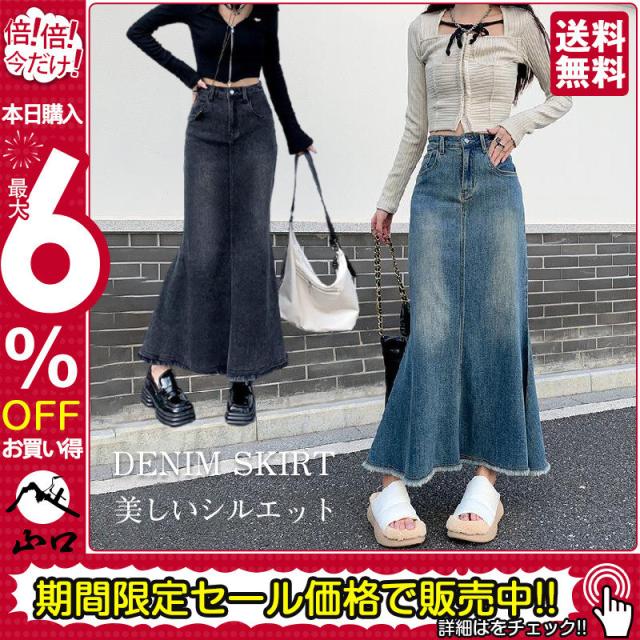 デニムスカート マーメイドスカート レディース タイトスカート ロング マキシ丈 ボトムス 可愛い お洒落 無地 Aライン 春夏秋
