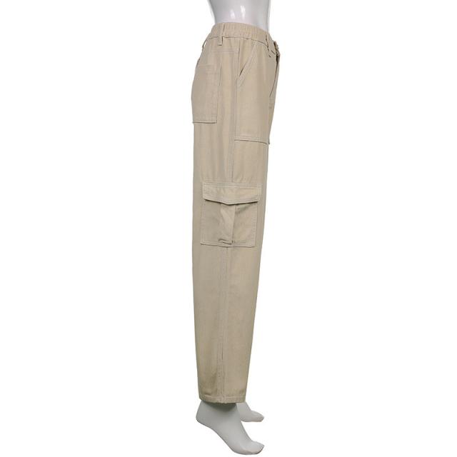 カーゴパンツ ワイドパンツ レディース チノパンツ ストレートパンツ ハイウエスト ワークパンツ 着痩せ 無地 カーキ 作業着 カ