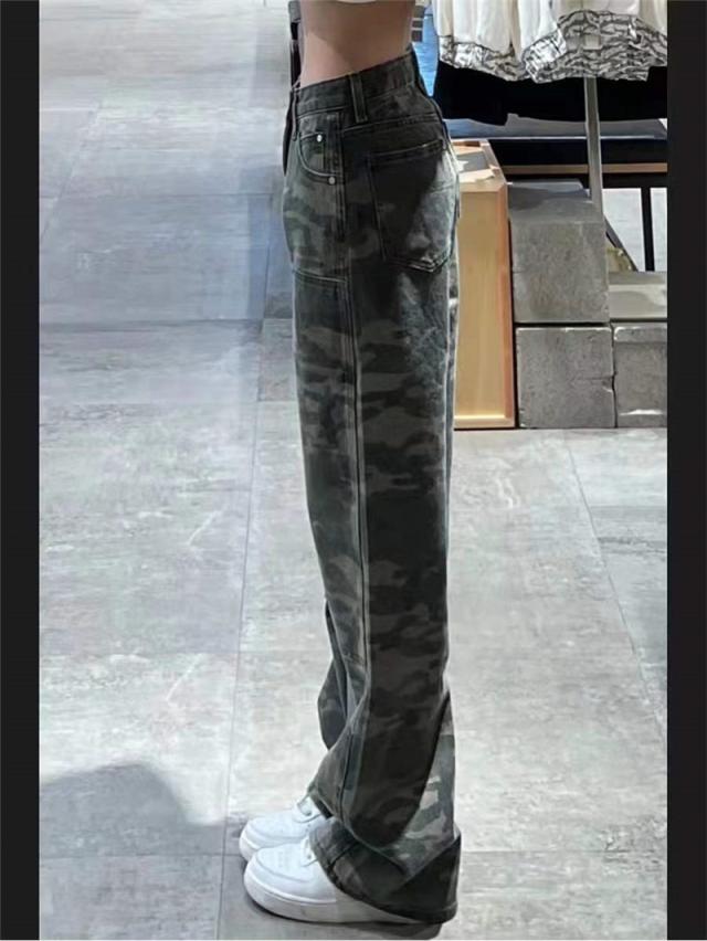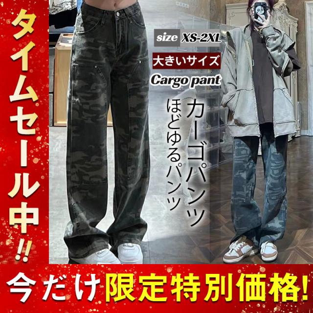 カーゴパンツ ワイドパンツ レディース 迷彩柄 ミリタリー ストレートパンツ 長ズボン ハイウエスト レトロ ゆったり 着痩せ カ