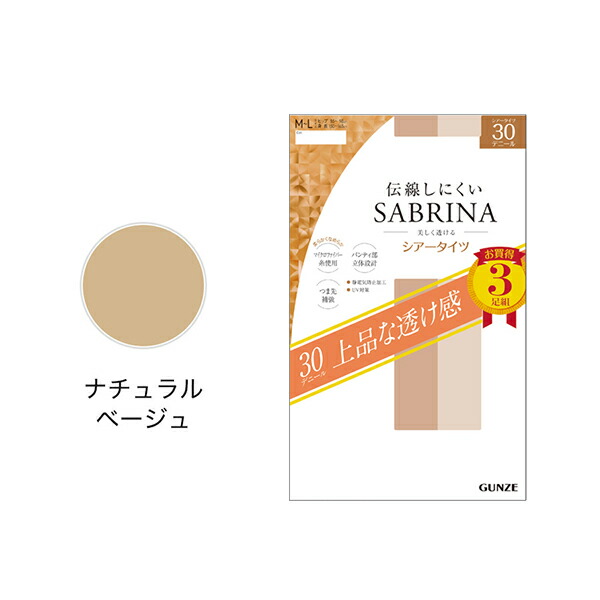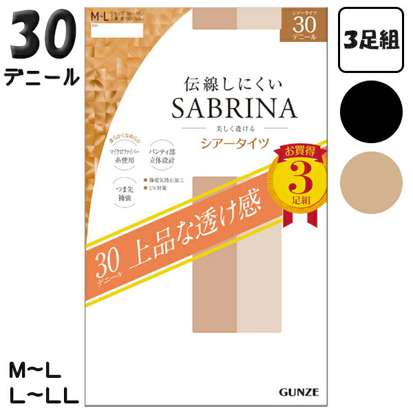 グンゼ サブリナ シアータイツ 3足組 30デニール 伝線しにくい つま先補強 個包装 M-L/L-LL | ナイロン レディース パンスト タイツ SP819 GUNZE SABRINA
