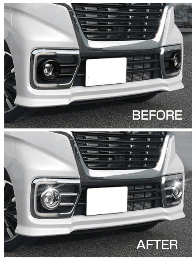 ・SUZUKI スペーシアカスタム MK53S用のフロントフォグカバーです。 ・フォグランプまわりのラインが強調されることにより、フロントの印象が引き締まります! ・鏡面で視界に入りやすく違いも分かりやすいので、満足度の高いパーツです。 ・両面テープで貼り付けるだけの簡単取付です。 |
