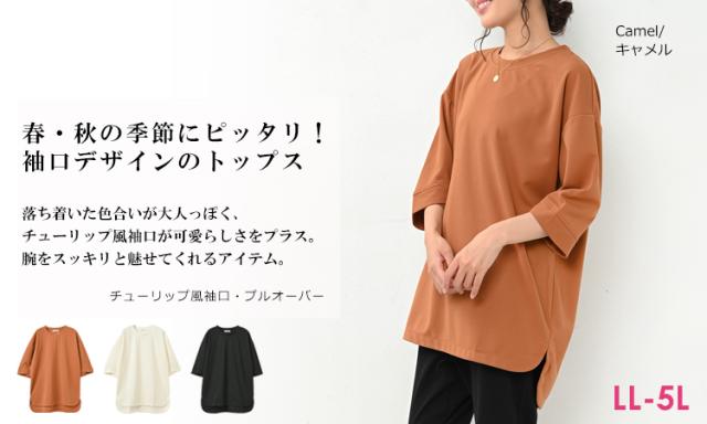 【メール便対応】落ち着いた色合いが大人っぽい、チューリップ風袖口プルオーバー。