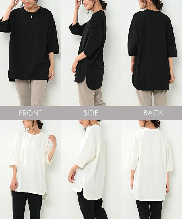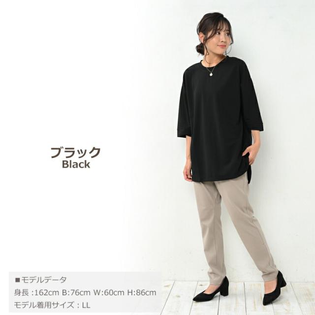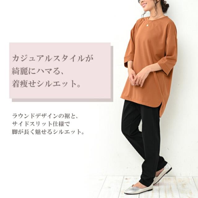 大きいサイズ レディース 7分袖トップス 7分袖カットソー 7分袖プルオーバー 7分袖チュニック 無地トップス 春服 秋服 春トップス 秋トップス クルーネック Uネック 七分袖 サイドスリット ラウンドヘム ステップヘム バックテール ベーシック シンプル 無地 細見え 体型カバー 体型隠し 二の腕カバー チュニック丈 お尻が隠れる着丈 お尻すっぽり丈 大人 カジュアル ナチュラル フェミニン 大人可愛い きれいめ かわいい 着こなし おしゃれ 普段使い デイリー 定番 春コーデ 秋コーデ ファッション 大きめ 女性用 婦人用 ミセス 30代 40代 50代 2022 春 秋 黒 白 橙 LL 3L 4L 5L XXXXL 2XL 3XL 4XL 13号 15号 17号 19号 bad-sa-tp0006