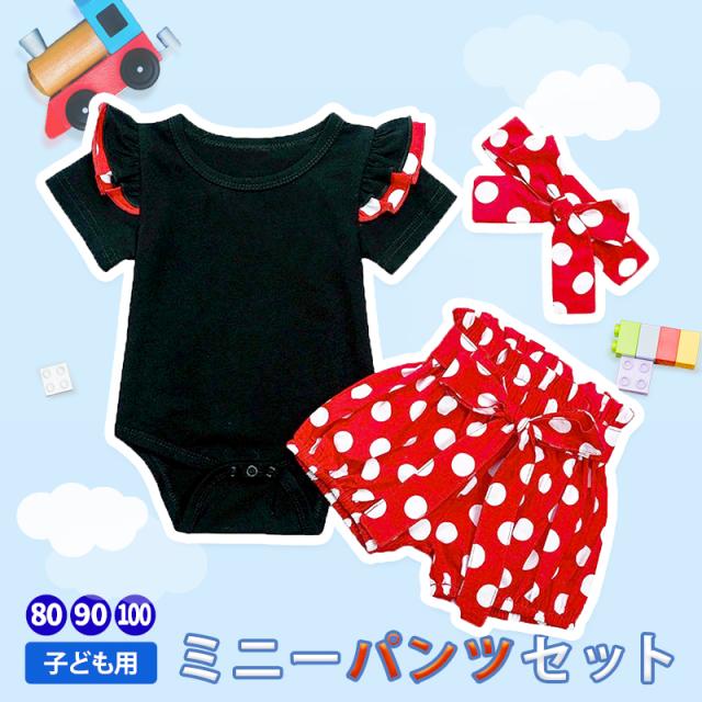 ロンパース コスプレ コスチューム キッズ ベビー 子供 ミニー <3点セット> 仮装 女の子 プレゼント パンツタイプ 衣装 発表会 ハロウィン <80 / 90 / 100> テーマパーク ランド