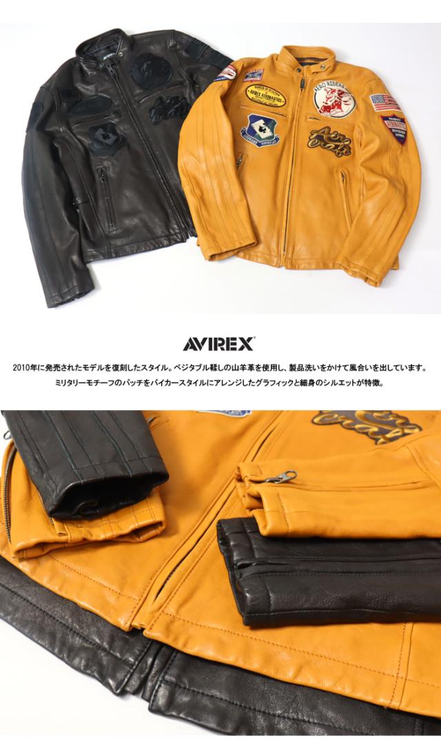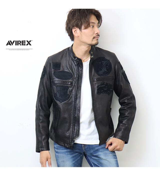 AVIREX アヴィレックス パッチド ライダースジャケット レザージャケット 革ジャン メンズ ライトアウター シングル アビレックス 送料無料 6121043