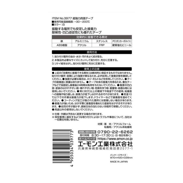 エーモン/amon 超強力両面テープ 車外用 サイドスカート・ハーフバンパーの取り付け時に 白 ホワイト 幅25mm×長さ1.2m×厚さ2mm 3977