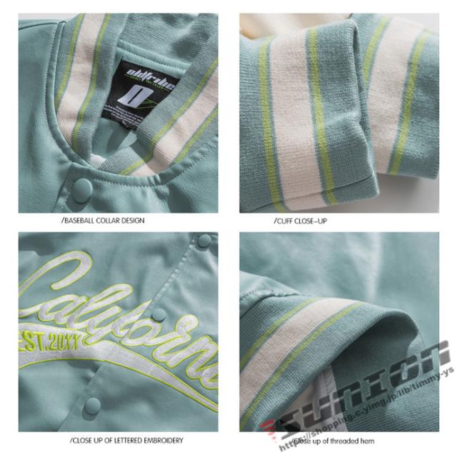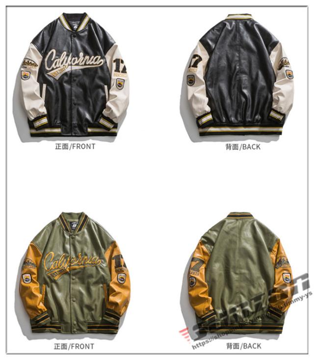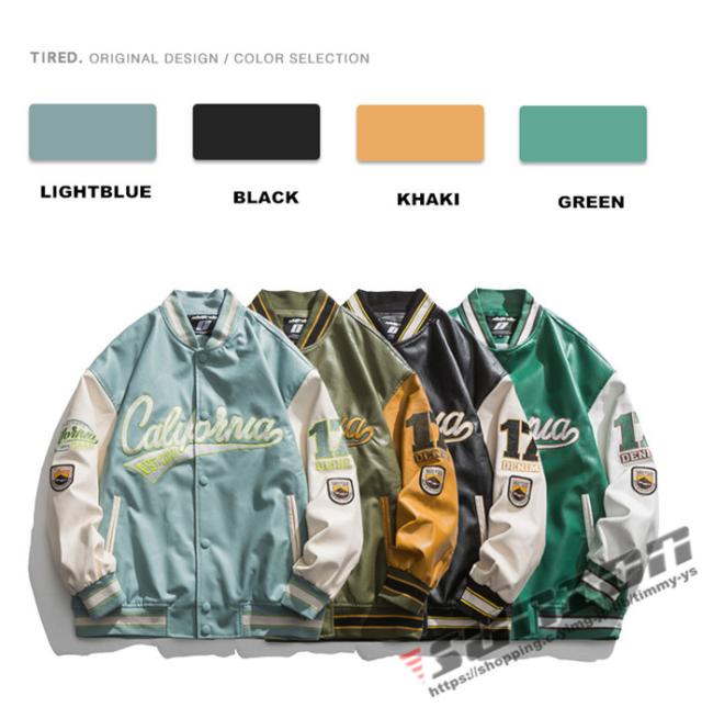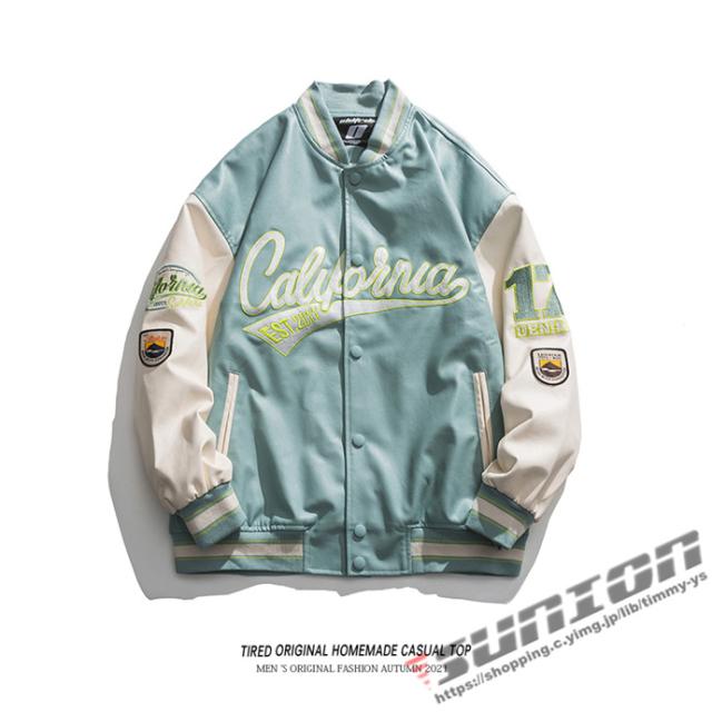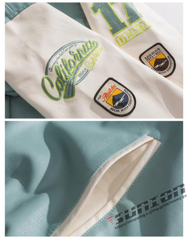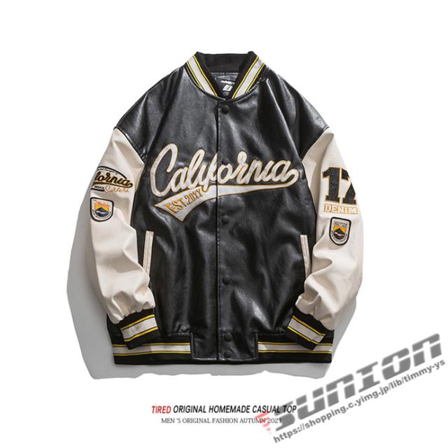 ブルゾン PU革ジャン メンズ カッコイイ PUレザー スタジャン ジャンパー フライトジャケット バイカラー 刺繍 薄手 羽織り 春 秋