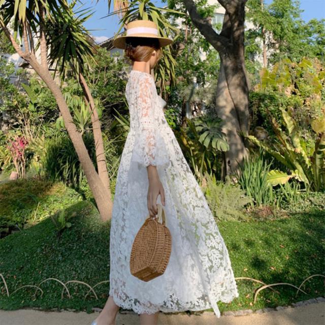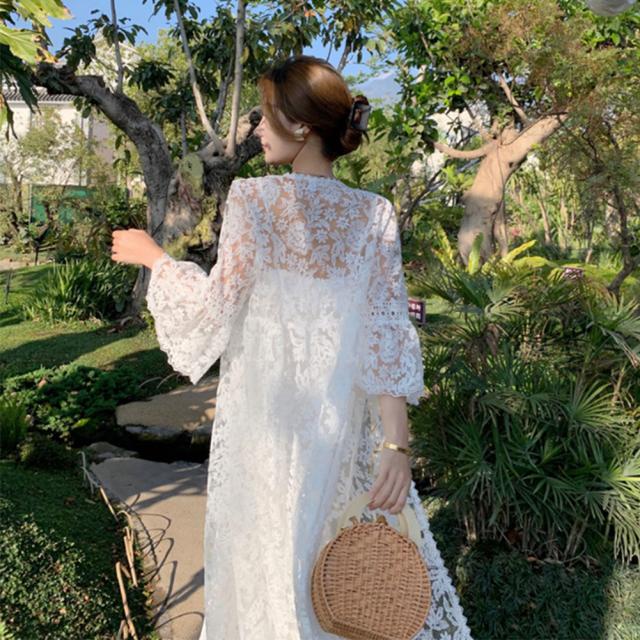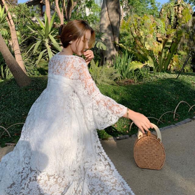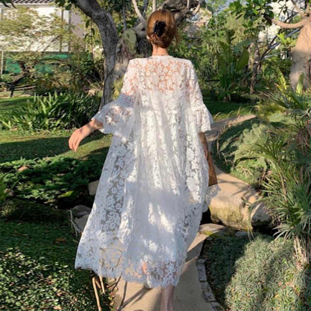 レディース ビーチドレス レース 体型カバー 水着カバー ビキニブラウス ビキニカバー ワンピースドレス セクシー 日焼け止め UVカット 花柄 刺繍 透け感 魅力的