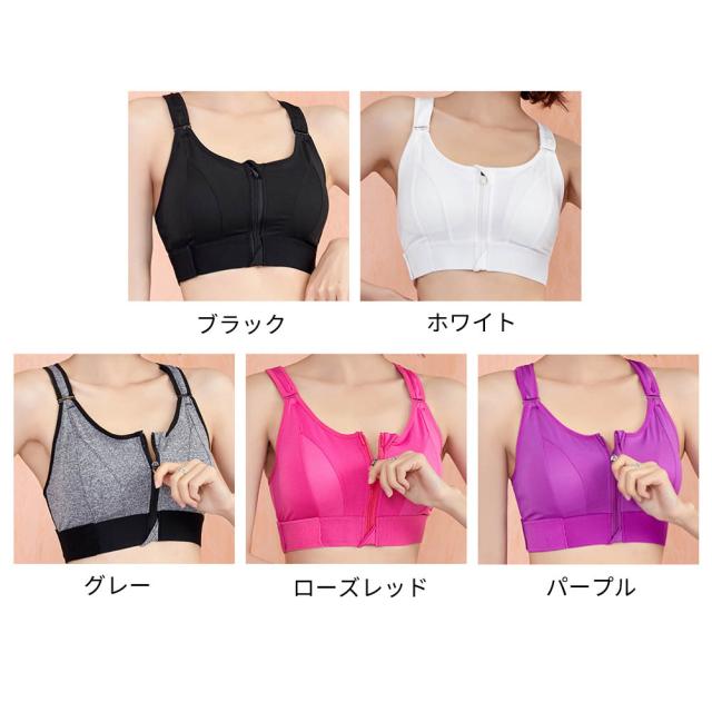 スポーツブラ 揺れない レディース スポーツブラジャー 揺れない 前開き フロントジッパー 大きいサイズ ヨガトップス ブラトップ ワイヤーなし 耐震 シンプル 速乾
