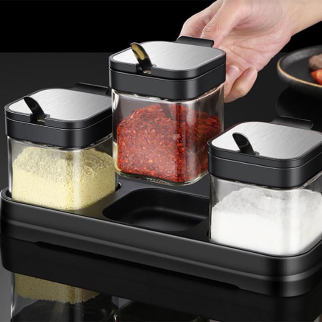 調味料ケース ガラス瓶3個セットなので、いろんな種類の調味料を保管できます。 ガラス瓶なので中身がすぐに分かり、耐久性も高く実用性の高い容器です。