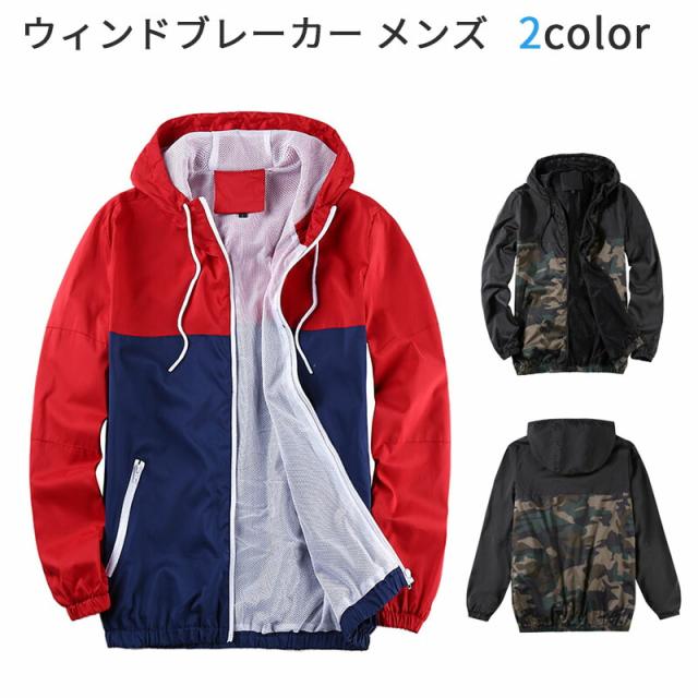 ウィンドブレーカー メンズ フード付き カモフラ柄 迷彩 ジャケット アウトドア