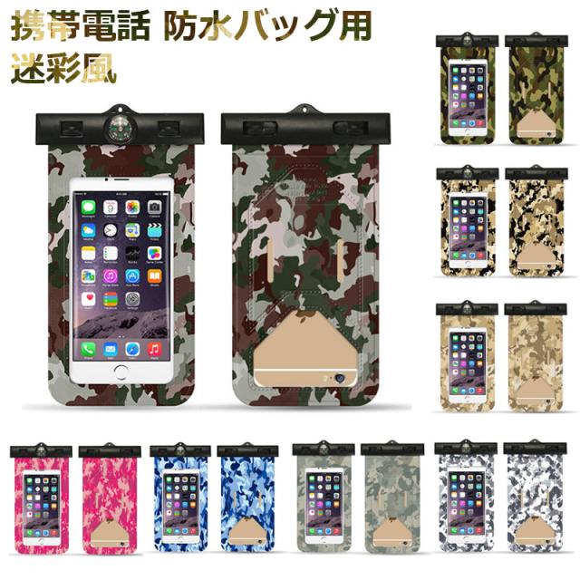 携帯電話 防水バッグ用 迷彩風 防水ケース スマホ用 ウォーターバッグ タッチ可 海水浴 水泳など 温泉 スキー iPhone Android等対応
