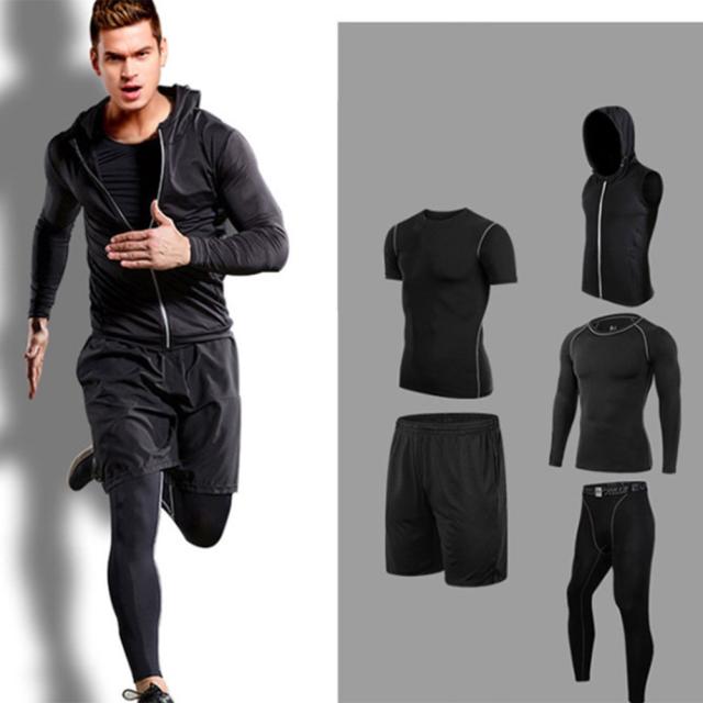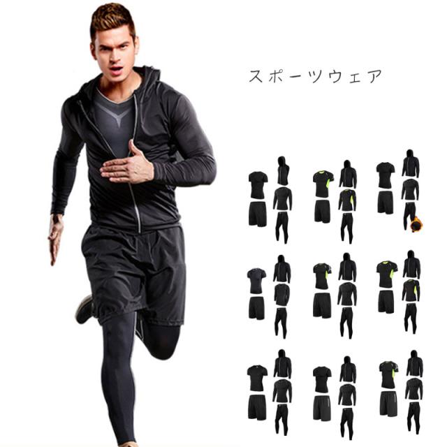 【在庫処分】コンプレッションウェア セット スポーツウェア メンズ 長袖 半袖 防臭 吸汗 速乾 ランニングウェア スポーツtシャツ ジャージメンズ上下 5点 運動着 ハーフパンツ