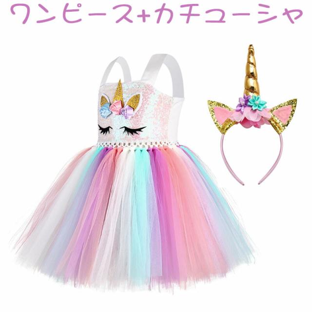 ハロウィン ユニコーン 仮装 発表会 フォーマル キッズドレス カチューシャ付き スカート 子供ワンピース 女の子 女児 ベビー 演出 ダンスウエア