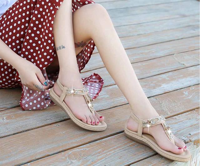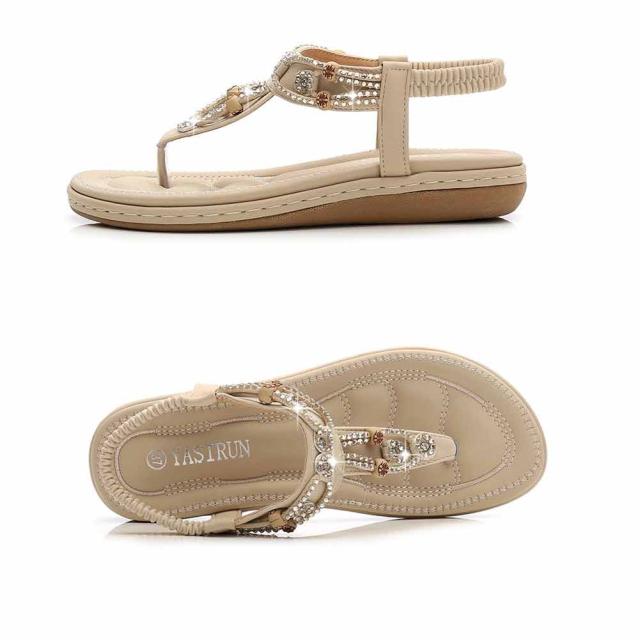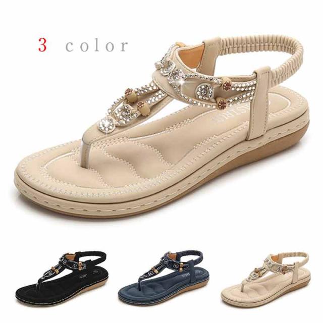 サンダル レディース ビーチサンダル/フラットサンダル ボヘミアン 厚底 ローヒールサンダル 水着 花付き レディーストングサンダル 美脚 歩きやすい