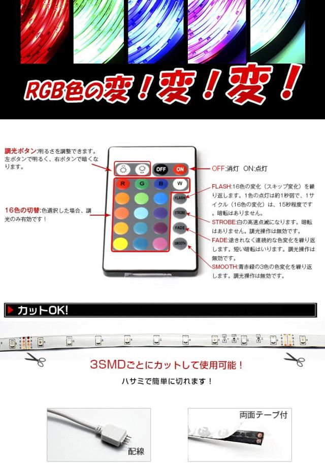 LEDテープライト 12V 超高輝度 16色RGB LED イルミネーションテープライト |