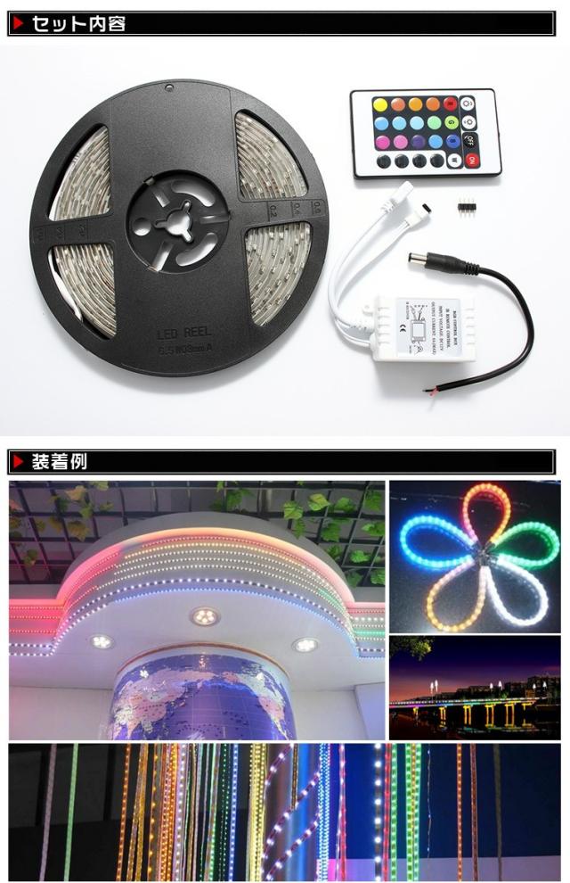 LEDテープライト 12V 超高輝度 16色RGB LED イルミネーションテープライト RGB SMD リモコン付 正面発光 LED電飾aks-36