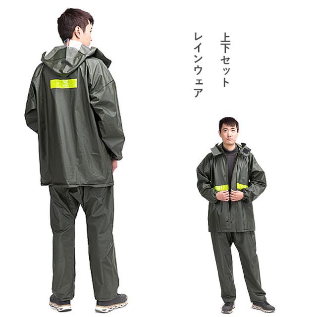 レインウェア 上下セット レインコート 梅雨 雨具 軽量 自転車 男女兼用 反射テープ付き 通学・通勤・作業用