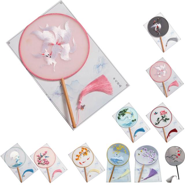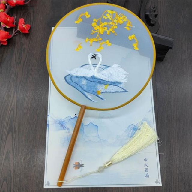 扇子 団扇 丸形 古典扇子 手作り ハンドファン 和服 古典 中華風 漢服飾り 踊り扇子 中国風 写真撮影道具 中華風舞台道具 コスプレ道具 花柄 刺繍