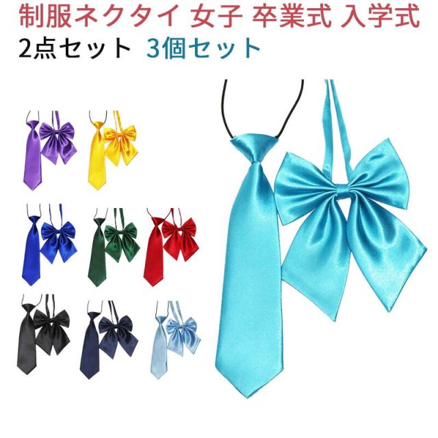 制服リボン 制服 リボン りぼん 制服りぼん スクールリボン 制服ネクタイ 2点セット 女子 高校生 簡単 学生服 卒業式 入学式 発表会 学園祭 コスプレ チェック レディース ハロウィン コスプレ プレゼント ギフト 3個セット