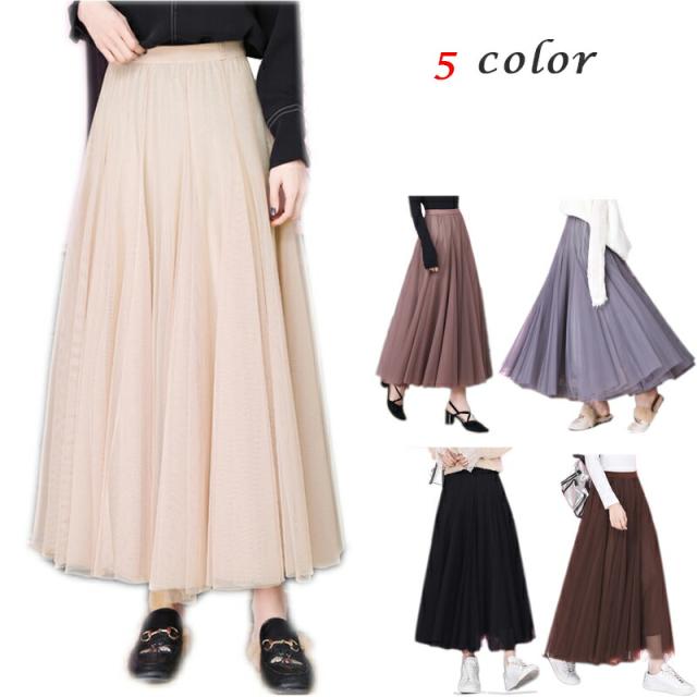 チュール レース スカート ボリューム ふんわり 抜け感 長さ 5色 レディース ふんわり