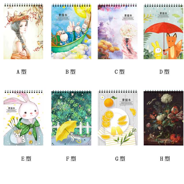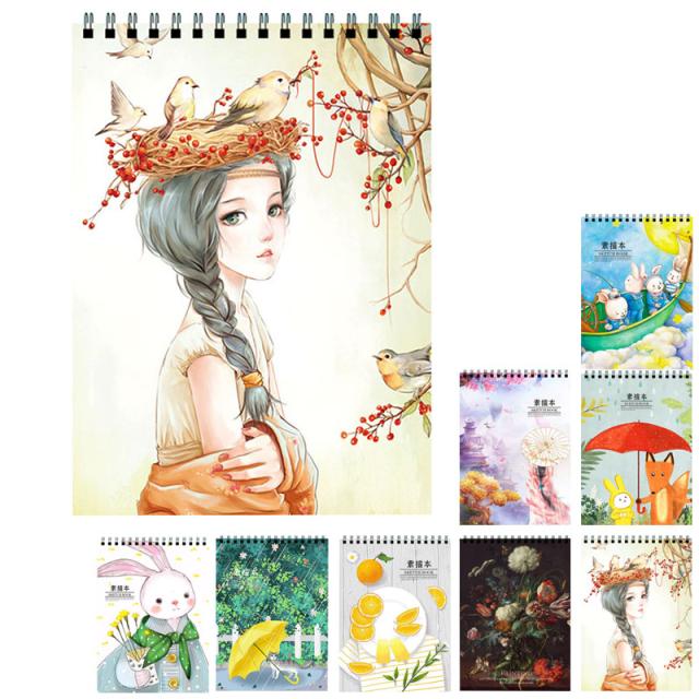 スケッチブック 画用紙 A4 50枚 スケッチ 水彩画 カラー鉛筆画 女の子 男の子 子供 美術生 学生用 4冊セット