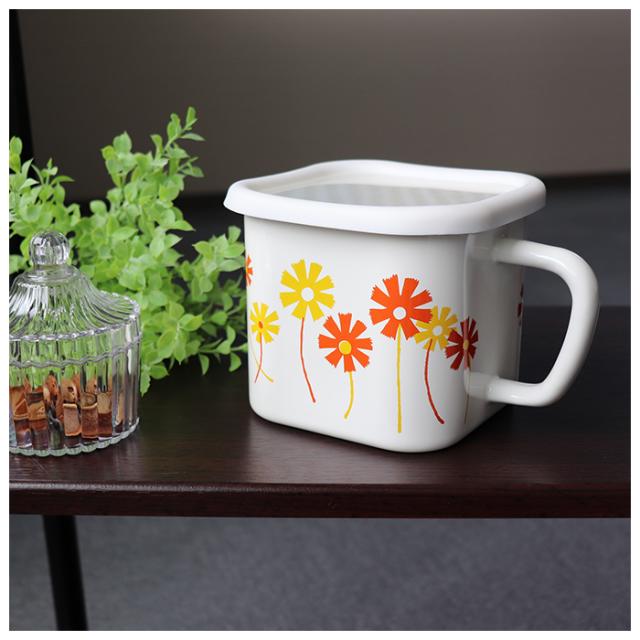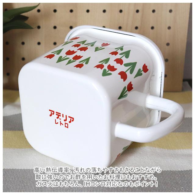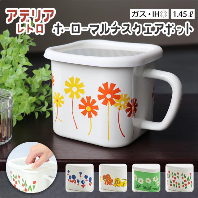 ホーロー 保存容器 アデリアレトロ 通販 琺瑯 ほうろう シール容器 耐熱 加熱 IH対応 直火対応 おしゃれ かわいい レトロ デザイン IH ガス 直火 マルチポット スクエア 角型 1.45L 1450ml そのまま 食卓 スープストック 味噌ポット ホーロー保存容器 ホーロー製 容器