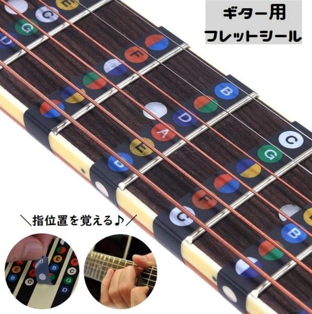 フレットシール 指板シール ギター用 ステッカー 初心者 練習 音名シール ギターコード 指位置を覚える 貼る 色分け スケール