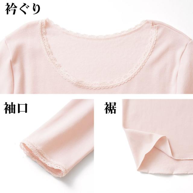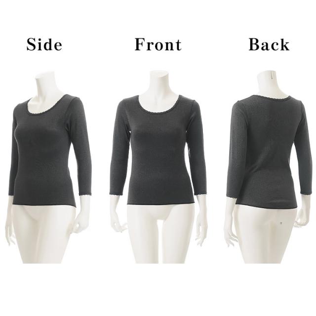 裏起毛 ストレッチ 8分袖 レディース 秋冬 あったか インナー 保温 フィット 遠赤外線 素材 前後差 防寒 肌着 長袖 レース付き トップス 婦人 女性 下着 K6301C-RT
