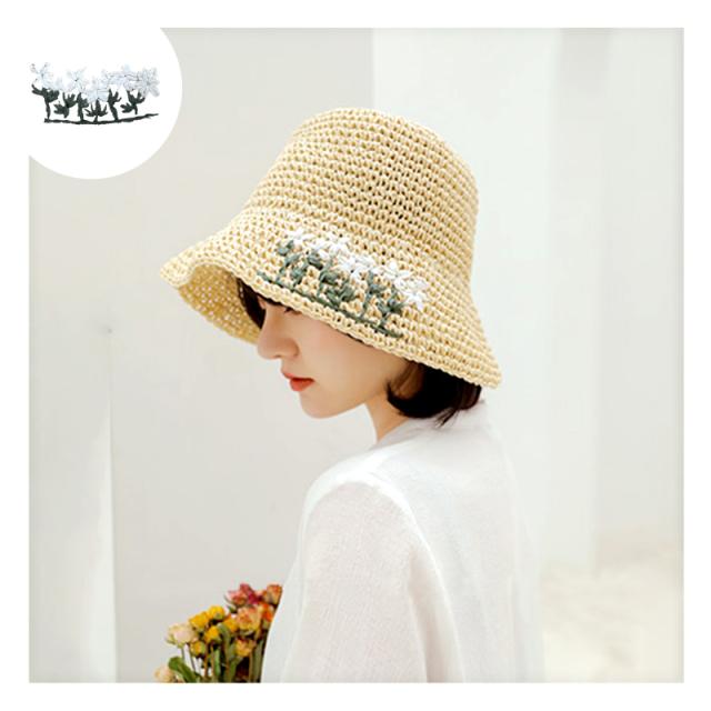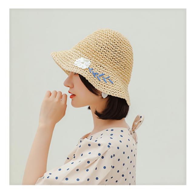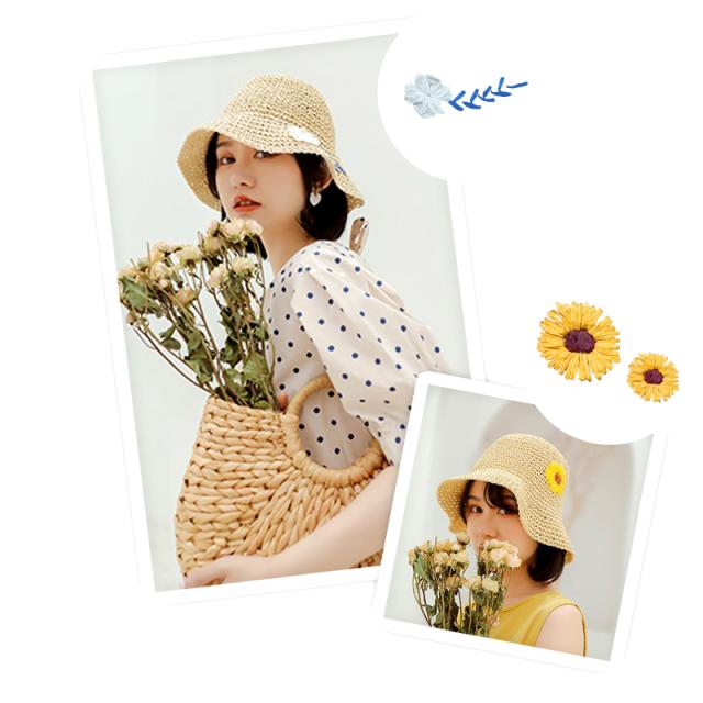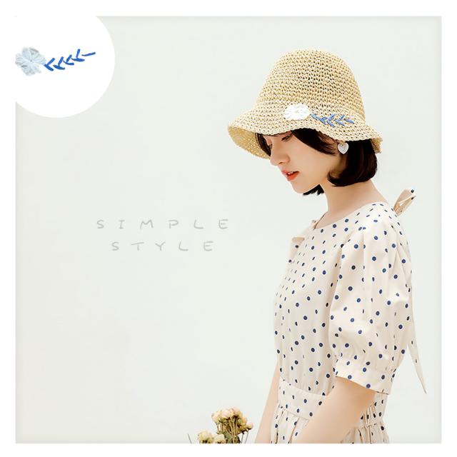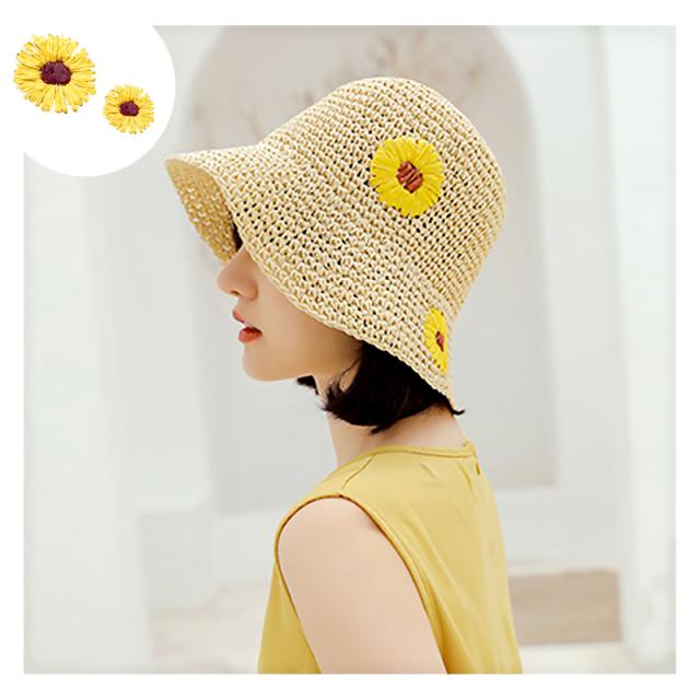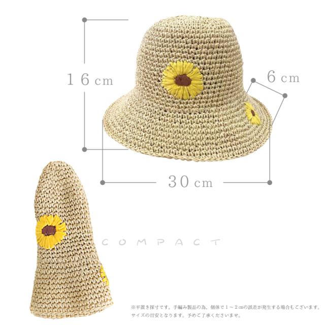 - ワンポイントのお花が可愛いです。被ってみた感想は思っていたより重くないと思いました。ツバがヘタっとなるので深めにかぶると良いかもしれません。発送も早く梱包も丁寧でした。