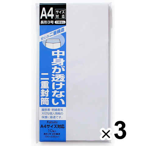 マルアイ 二重封筒 長3 郵便枠なし 10枚入 3個セット 送料無料