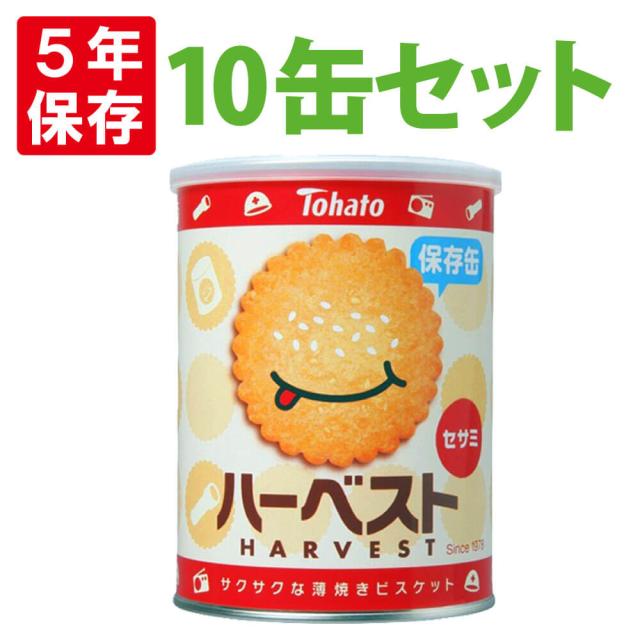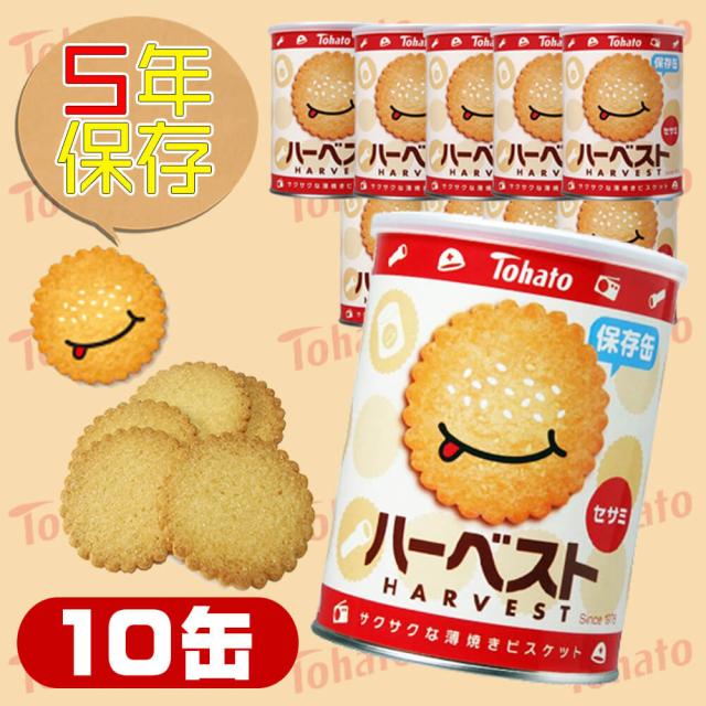 ハーベスト保存缶 x10缶セット 東ハト 非常食 5年保存食 薄焼きビスケット「ハーベストセサミ」お菓子 スナック(長期保存食 非常用 防災食 カンパン 乾パン かんぱん クッキー 備蓄品 防災グッズ 防災セット