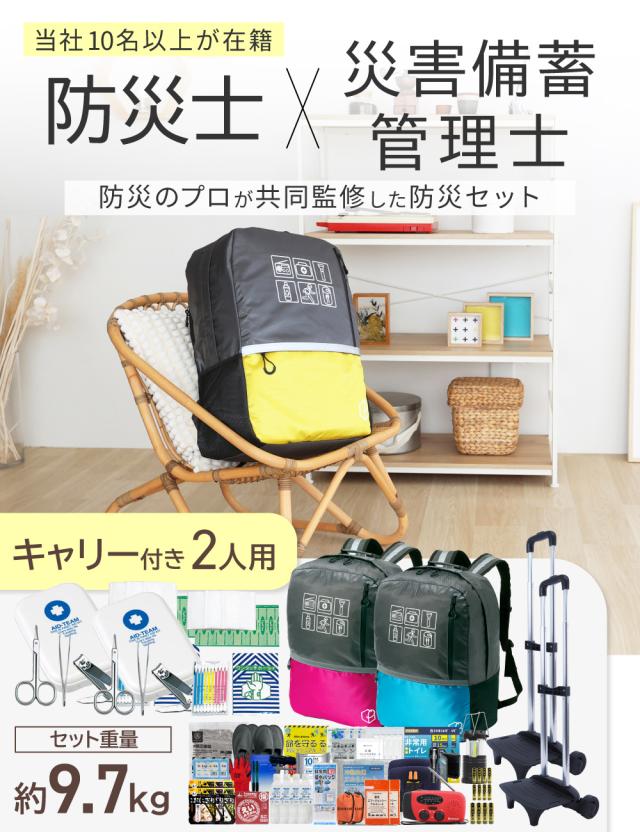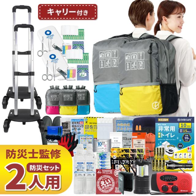 防災セット 2人用 47L L4BRCR02 警戒レベル4 ビッグリュック キャリーカート 防災士監修 防災リュック 大容量 非常食 保存水