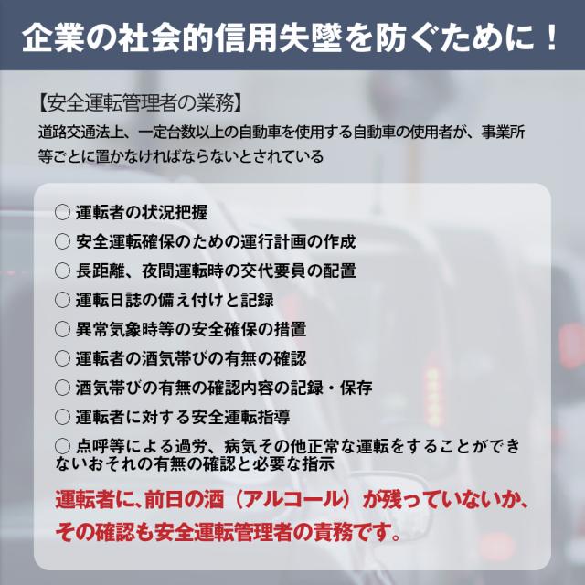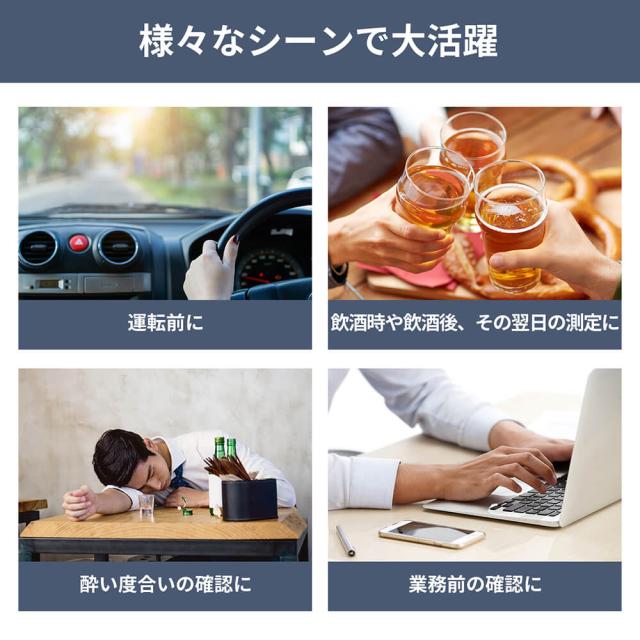 国家公安委員会が定めるアルコール検知器としてご使用いただけます。本機の使用の有無(判断結果を含む)に関わらず、飲酒運転に関しては一切責任を負いません。