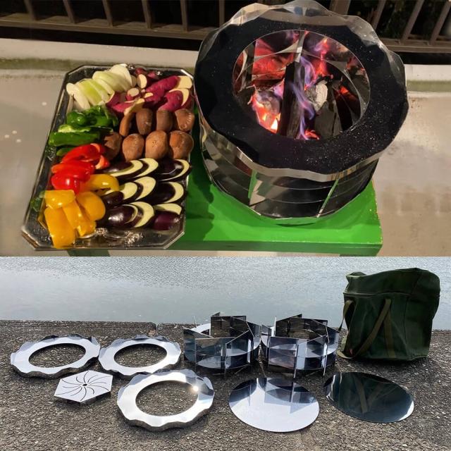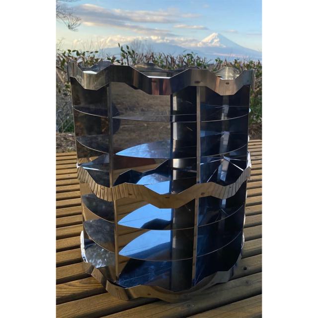 ステンレス製 焚き火台 筒状収納袋付き (組み立てたまま収納 防災グッズ 便利グッズ 調理器具 キャンプ 野外活動 集会 アウトドアグッズ 自治体備蓄品 防寒対策 携帯七輪 焚き火 暖房 無煙 炭火 非常用防災対策)