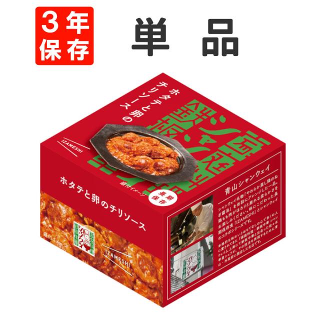 ホタテと卵のチリソース シャンウェイ×IZAMESHI(イザメシ) 缶詰 3年保存食 非常食 防災食 賞味期限3年 非常用 備蓄 食料 ローリングストック 災害 食品 防災グッズ カン おかず 本格 メイン 缶づめ 長期保存食