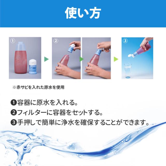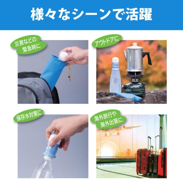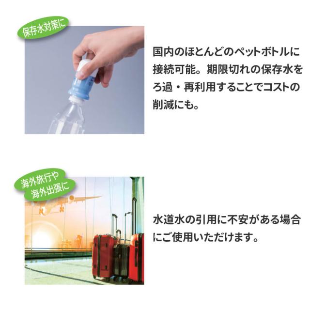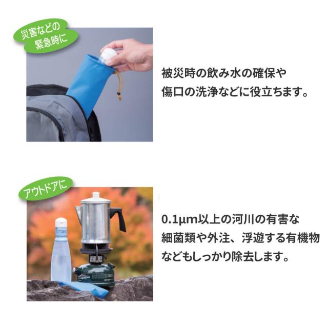 約200Lの濾過能力 ペットボトル互換性 災害時等に飲用水確保!