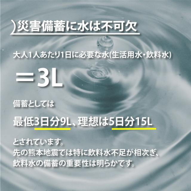 特殊な充填方法により保存水として、現在確認できている保存可能年月が最大15年です。