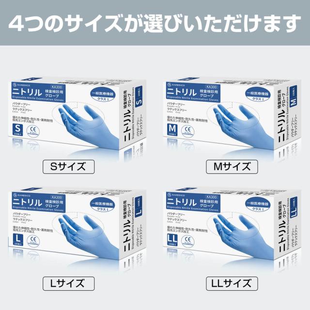 医療用 ニトリル手袋 パウダーフリー 100枚入 一般医療機器クラス1 RAMEDICO 青 S M L LL 検査検診用 食品衛生法適合品 ブルー 粉なし ニトリルグローブ ゴム手袋 使い捨て