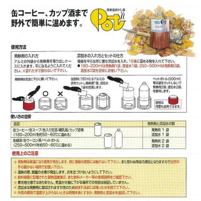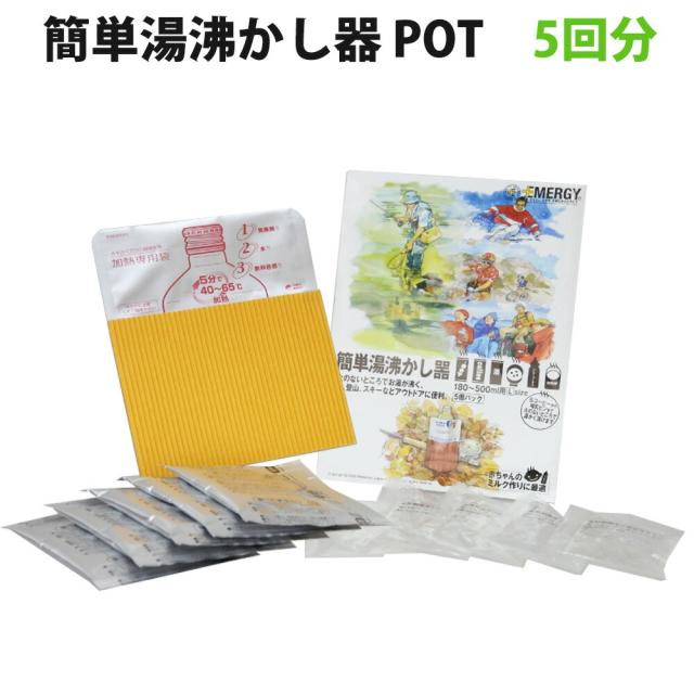 携帯用簡易加熱器 簡単湯沸かし器POT(5回セット) 180から500ml用 缶飲料 哺乳瓶 ペットボトル カップ酒等 防災グッズ 災害グッズ 非常用 防災セット 赤ちゃん用 乳児用 女性用 非常食 【メール便OK(2個まで)】