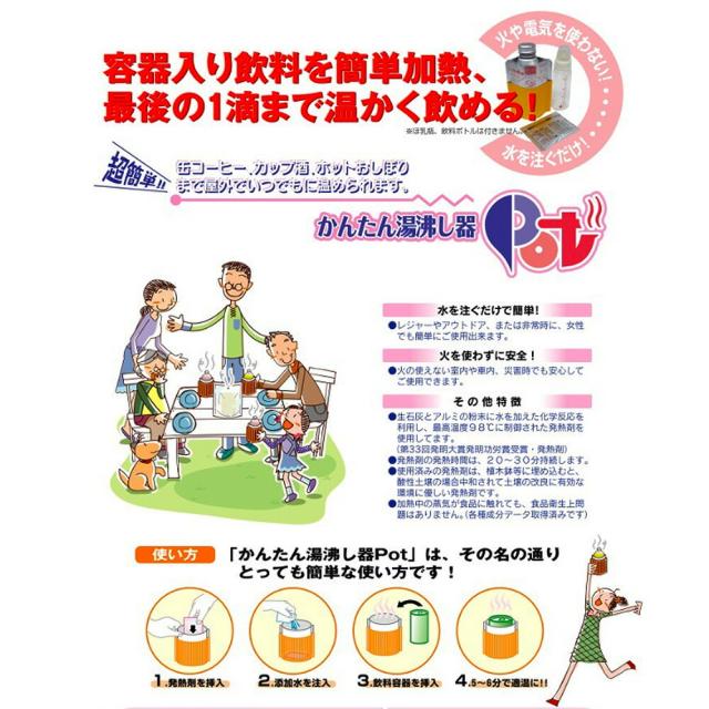 火の無い所でお湯が沸く・赤ちゃんのミルク作りや、缶飲料を温めるのに便利です。