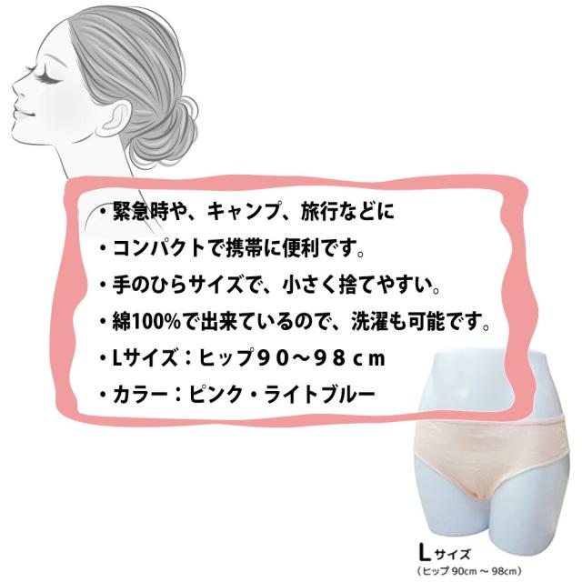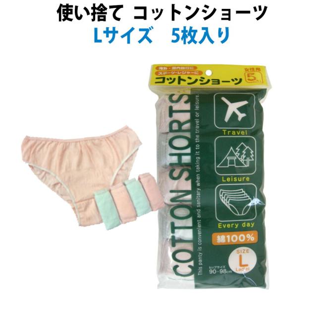 コットンショーツ 女性用 Lサイズ 5枚入 使い捨てタイプのコットン下着 綿100%素材 使い捨てショーツ インナー 防災備蓄用 携帯用 旅行用に 災害時 避難生活 非常用 防災グッズ 防災セット 非常持ち出し袋に