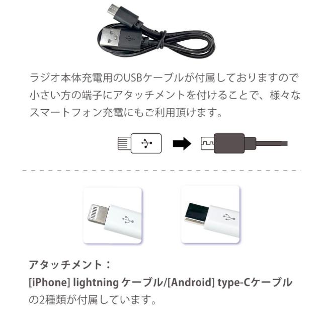 防災ラジオライト 10年保存 電池付き 単4乾電池 Lightning type-c USBコネクタ付 単品